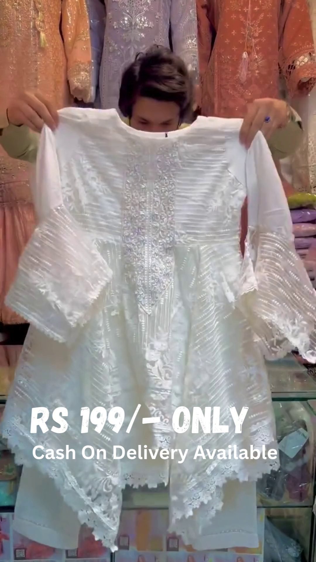 Occasion & Styling Tips: Ideal for festive events, engagement ceremonies, or Eid celebrations. Pair this suit with statement earrings, nude or silver heels, and a sleek clutch to enhance the regal appeal. Keep the makeup soft and glowy to complement the dreamy white elegance.