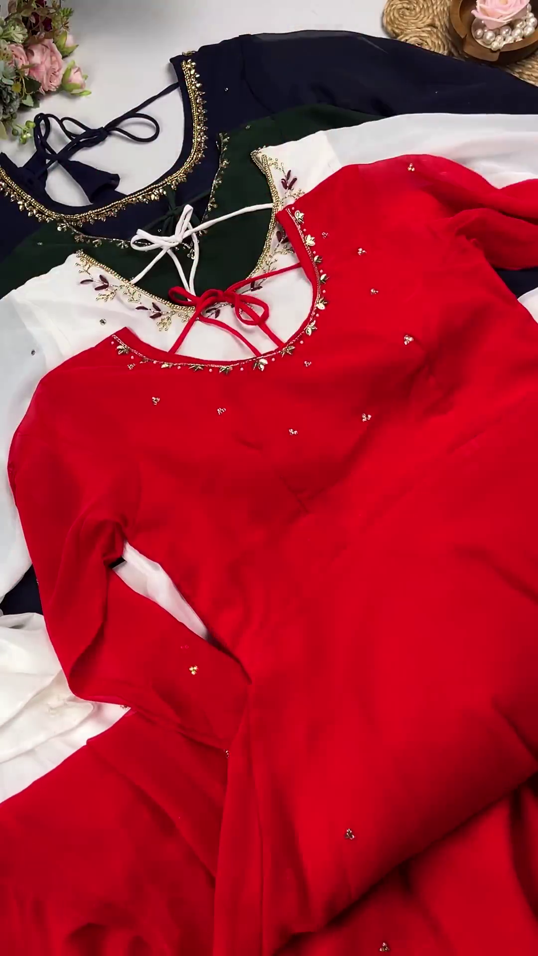 Feature Details Type Premium Designer Embroidered Anarkali Color Forest Green with Gold-Toned Accents Work Type Minimalist Zari Embroidery • Tiny Sequin/Bead Highlights Neckline Sophisticated Curved Neck with Zari Framing Sleeves Full-Length with Scalloped Embroidered Cuffs Back Style Adjustable Dori Tie-Ups for a Secure Fit Fabric High-Quality Georgette or Crepe-Finish Fabric