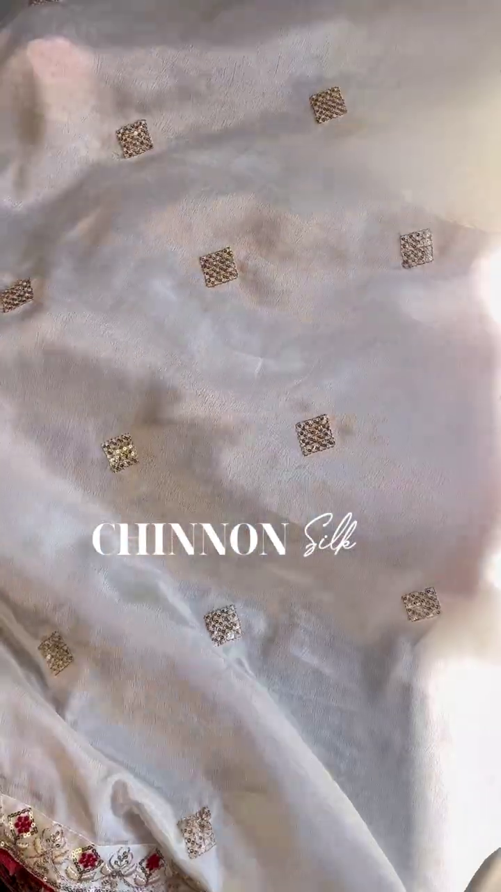 | Work Type | Golden Zari Vine Embroidery • Sequin Buttis • Patola Print |