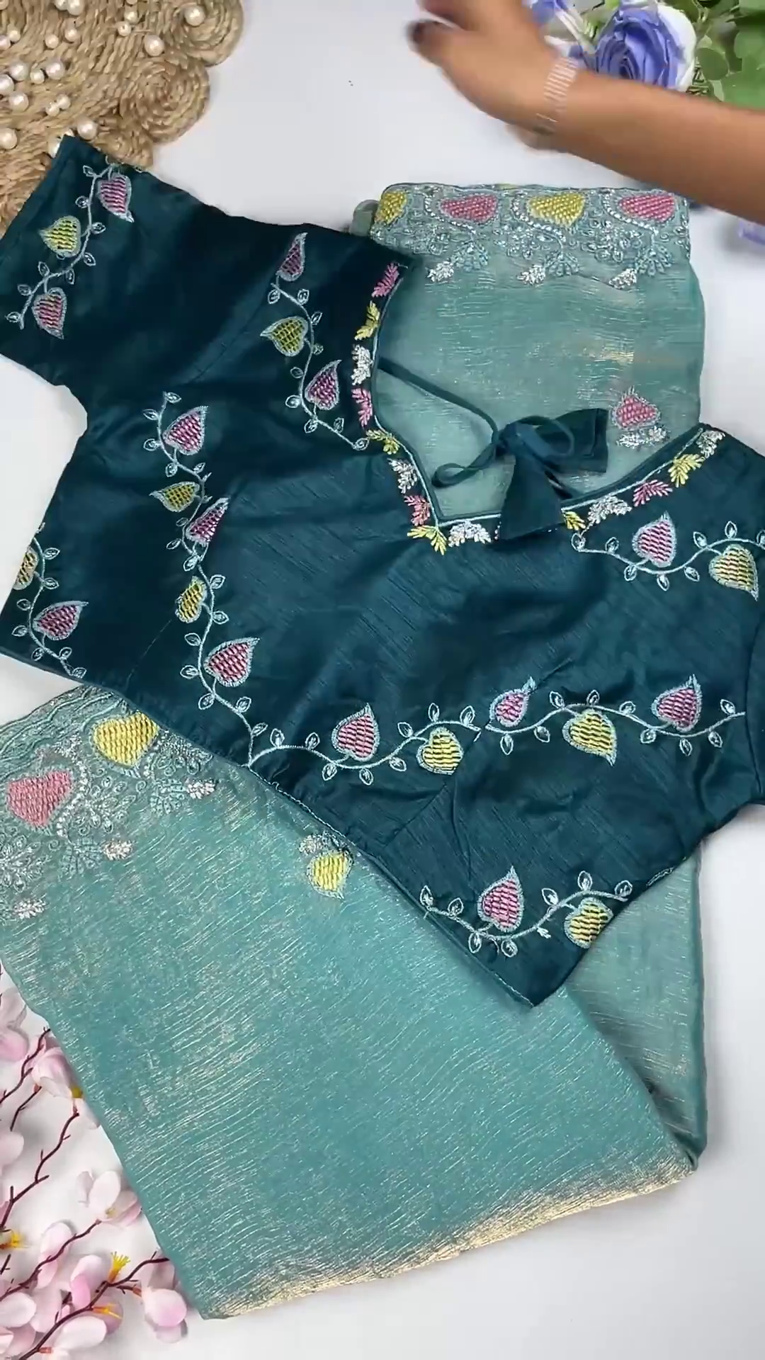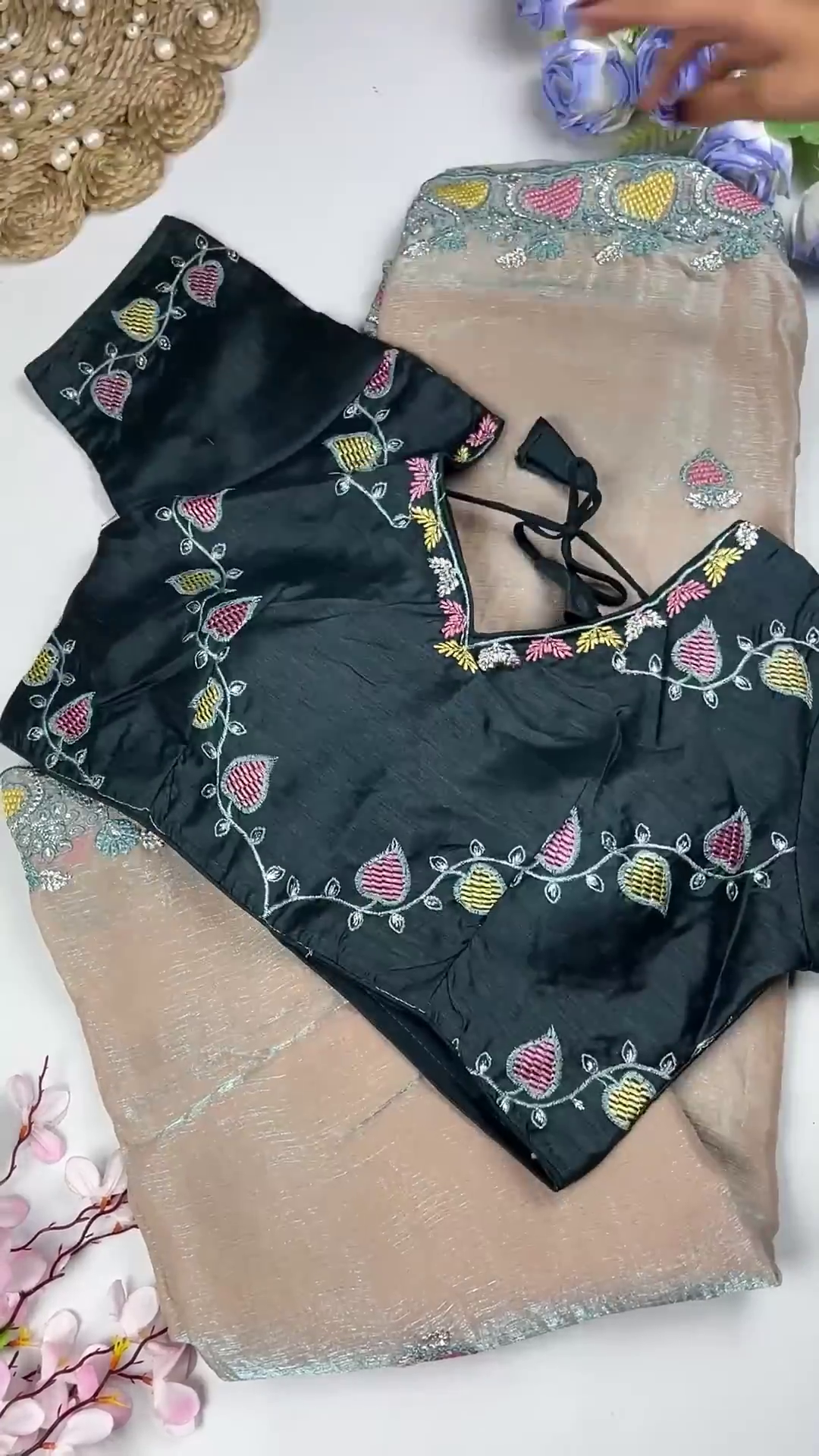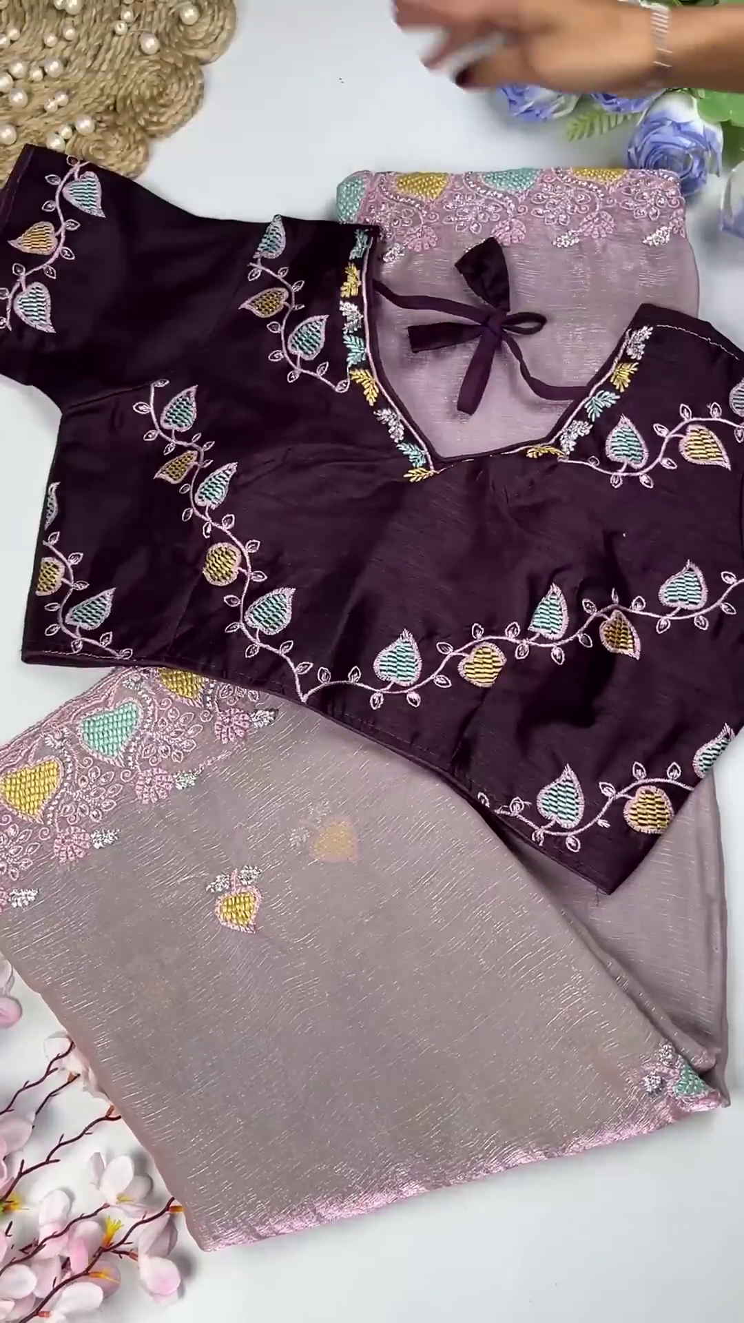 Royal Maroon Leaf-Embroidered Blouse with Sand Gold Saree Set