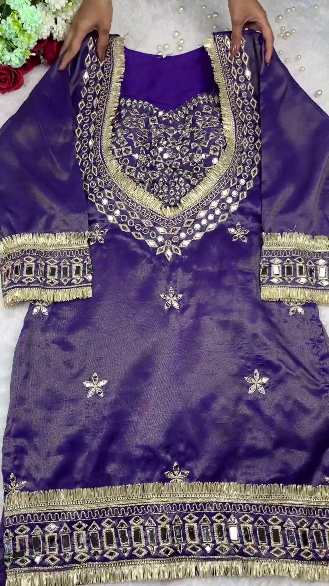 Royal Purple Silk Kurti with Intensive Mirror Artistry