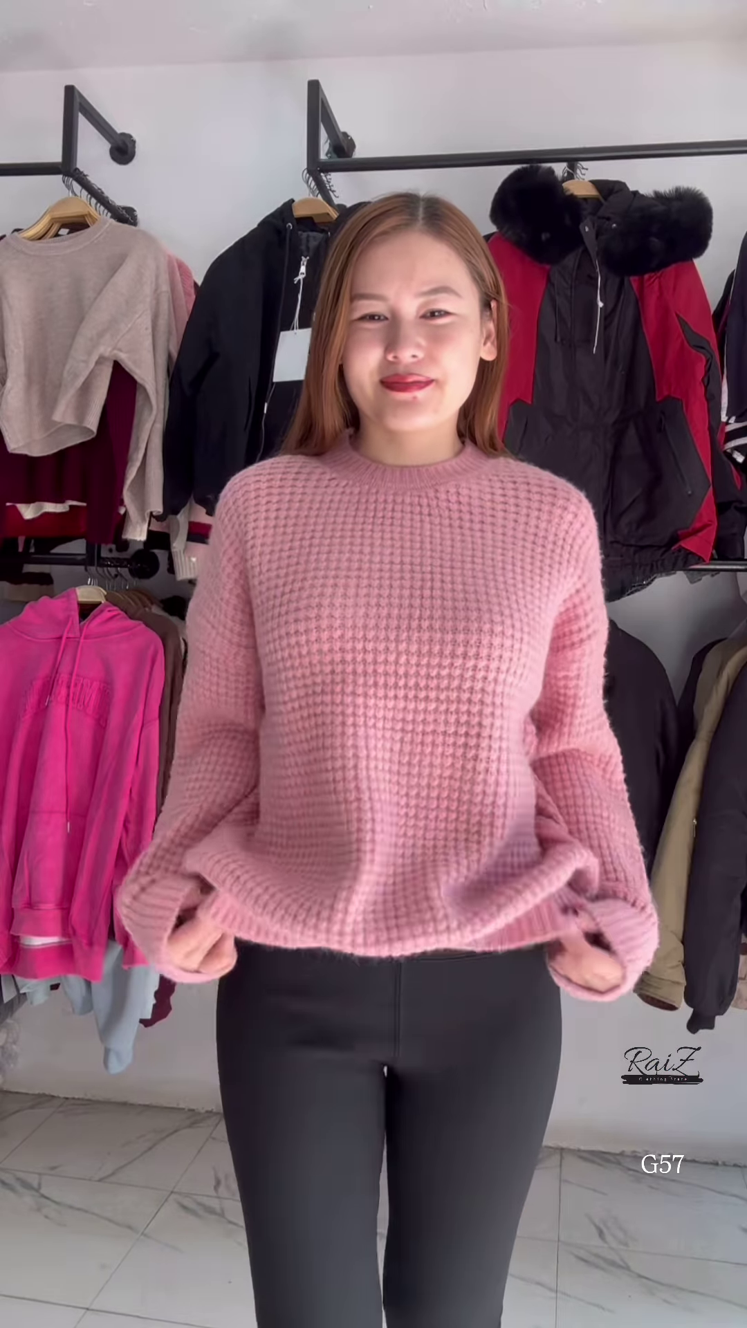 - 👕 Top: Textured knit sweater with full sleeves and relaxed fit