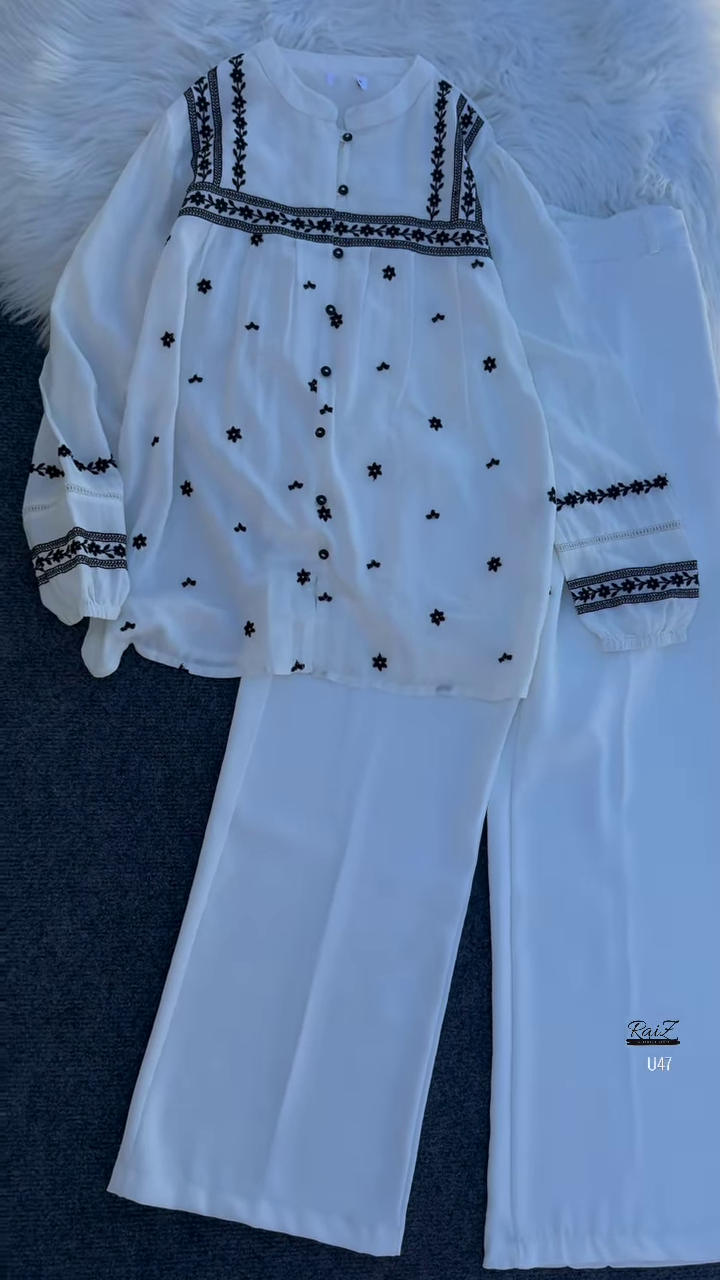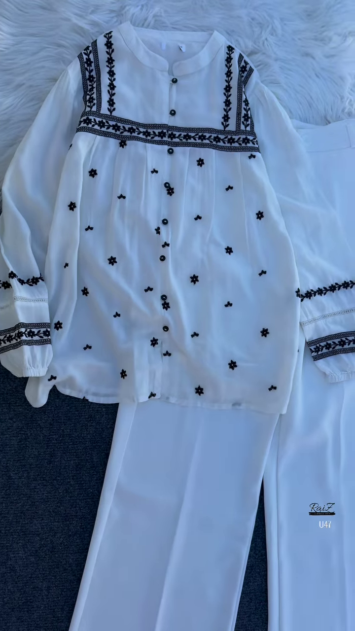 Effortlessly combining tradition with a modern flair, this beautifully crafted white kurta set brings timeless grace to contemporary wardrobes. The set includes a soft, flowy embroidered kurta paired with matching wide-leg trousers — a comfortable and stylish outfit that transitions seamlessly from casual daywear to festive moments.