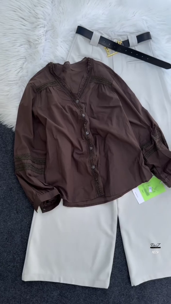 This two-piece set is incredibly versatile—wear it together for a perfectly coordinated look, or mix and match the pieces with other staples in your wardrobe. Pair the blouse with jeans for a relaxed chic vibe, or style the trousers with a fitted top for an elegant yet effortless ensemble.