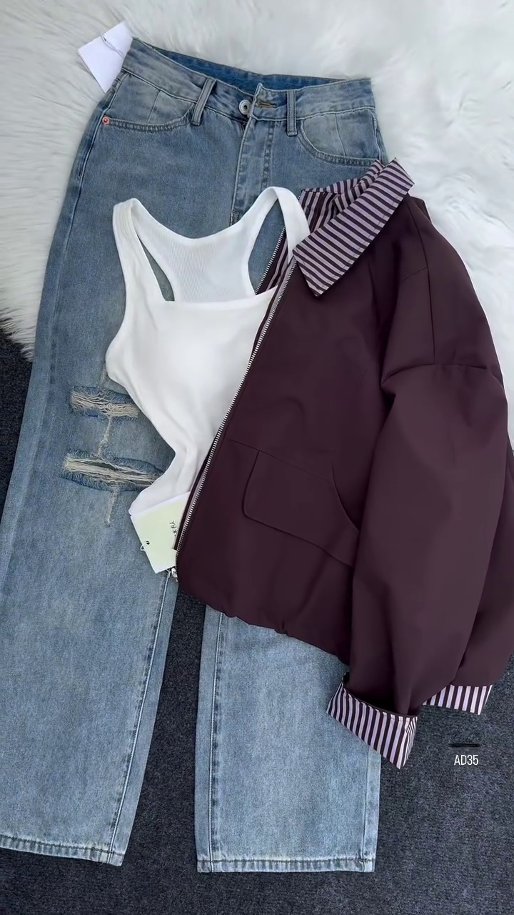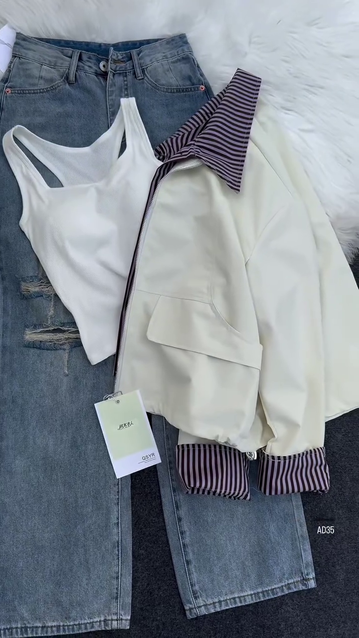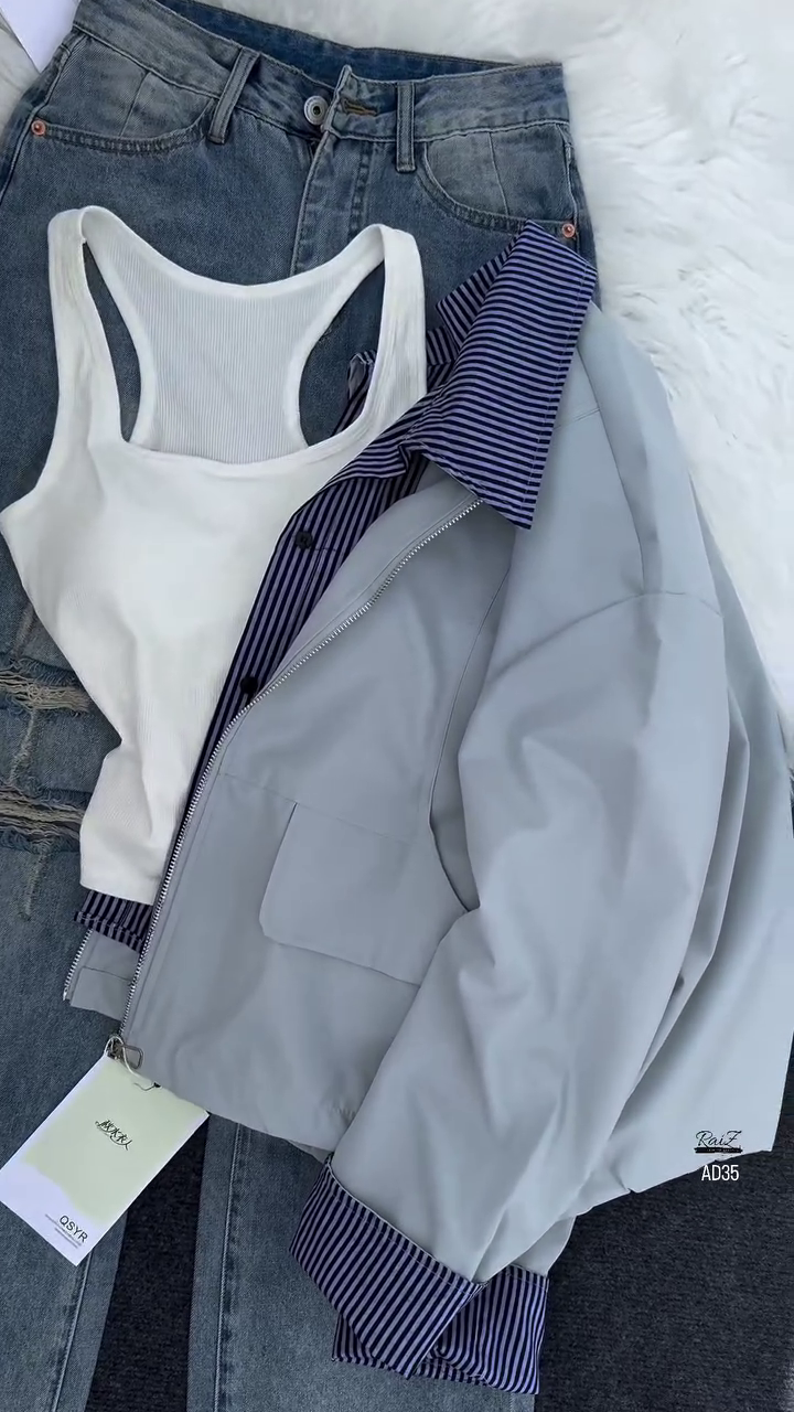 Crafted with a smooth and durable fabric, the AD35 jacket ensures comfort while maintaining its structure for a refined silhouette. The standout feature lies in its inner striped lining and cuff detail, which add a touch of sophistication and contrast, allowing for subtle styling versatility. Whether worn zipped up for a sleek finish or left open to showcase layers beneath, this jacket adapts seamlessly to your look.