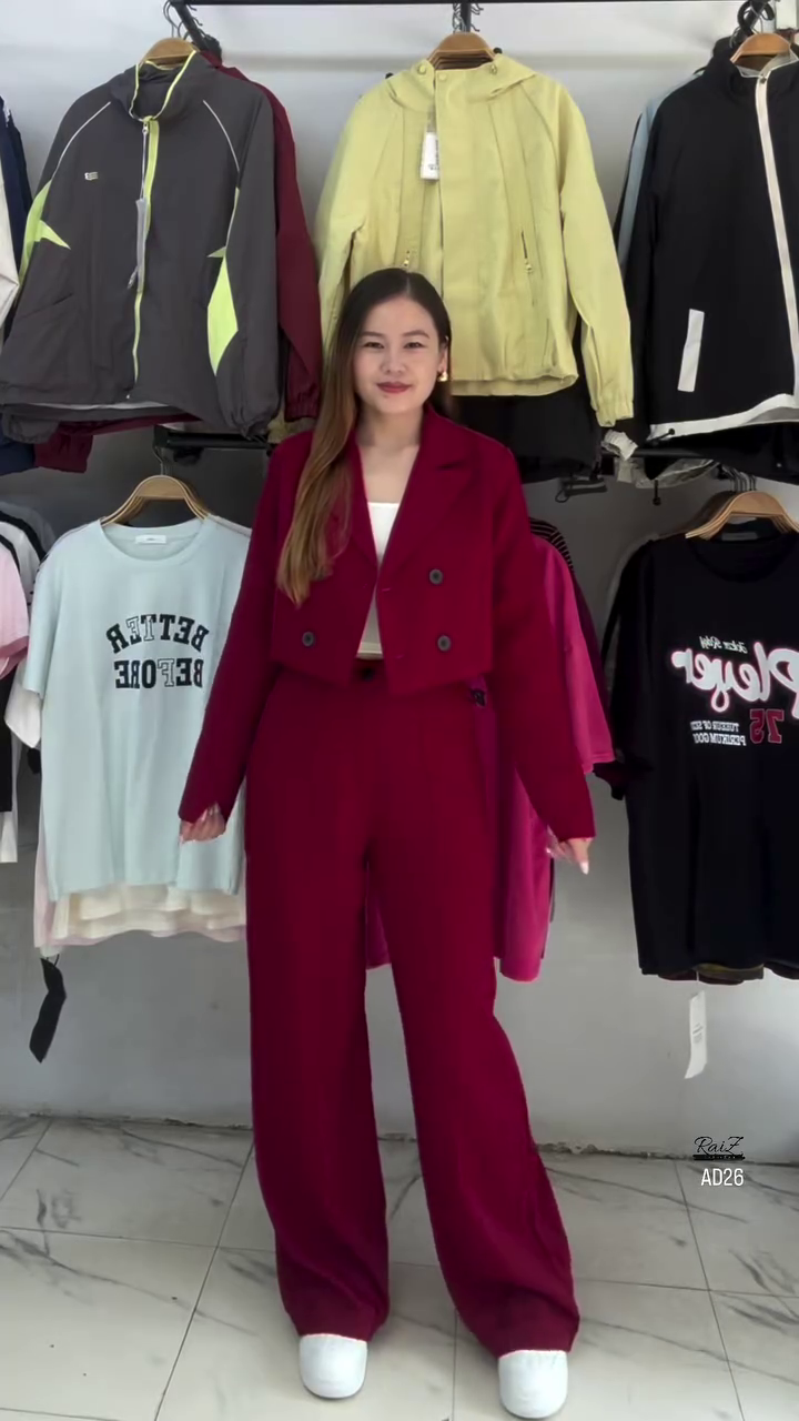 The matching high-waist trousers are designed with a sleek, straight-leg silhouette that elongates the figure and ensures a flattering fit for all body types. Their tailored seams add definition, while the lightweight yet durable fabric allows for all-day comfort and effortless movement.